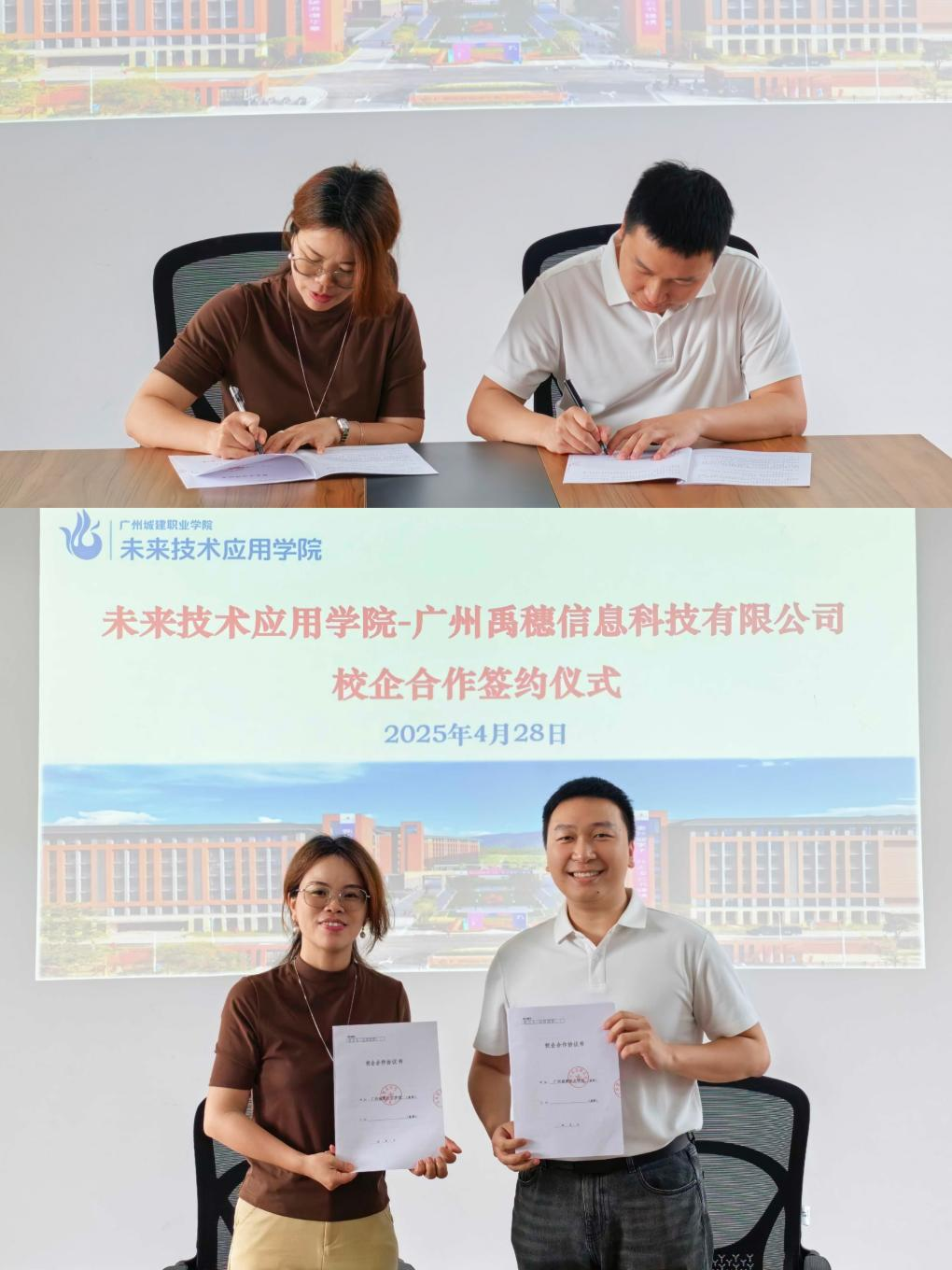2025年4月28日上午11时,未来技术应用学院与广州禹穗信息科技有限公司校企合作签约仪式在学院F3-603会议室举行。