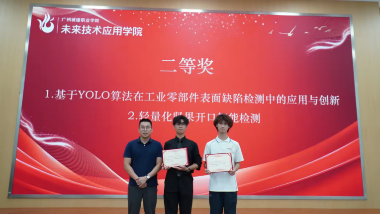 (基于YOLO算法在工业零部件表面缺陷检测中的应用与创新:罗祥明、赖宇、卢正晨、丘文驍、江嘉堃;轻量化坚果开口智能检测:古贵炫、刘俊南、周灏霖、黄旭全、王凯涛)