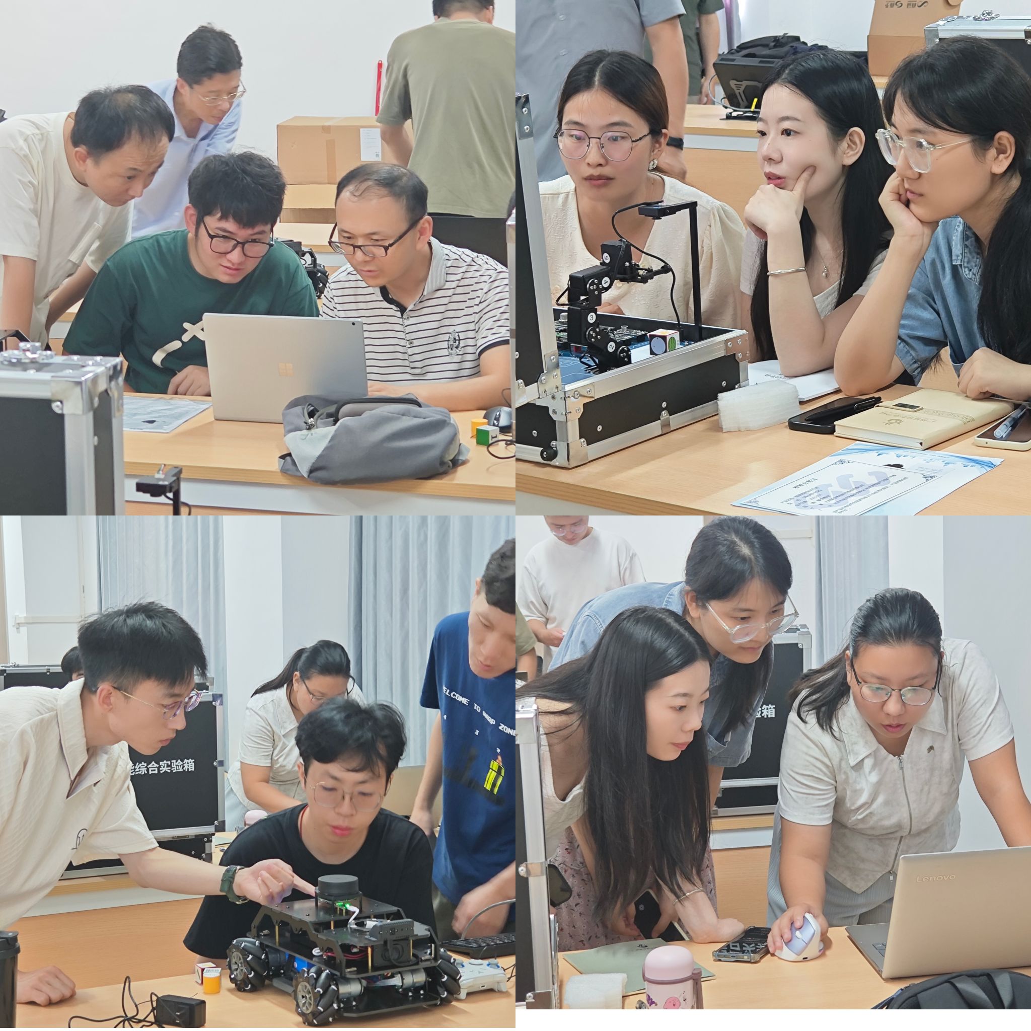本次培训围绕商汤、联合伟世、自行者等品牌的实训室设备及平台操作展开,时间安排紧凑且层次分明。培训采用线下形式,分别在 F3 - 102 人工智能应用实训室、F3 - 103 智能传感器实训室。为保障培训实效,此次培训以 “分组同步 + 穿插进行” 的方式推进,前期做好了培训分组、明确每组培训责任人,落实了培训签到与考核安排,并明晰了设备对接的课程项目开发计划及分工,确保教师全面掌握设备使用方法。