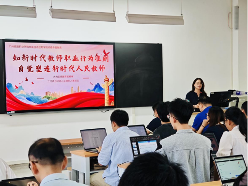 为进一步加强师德师风建设,引导教师坚守教育初心、勇担立德树人使命,2025 年 9 月 25 日下午 15:30,广州城建职业学院未来技术应用学院于 F3-604 教室开展 “知新时代教师职业行为准则,自觉塑造新时代人民教师” 师德专题教育会,本次会议由未来技术应用学院院长潘丹主持会议,学院全体教师参与此次学习。