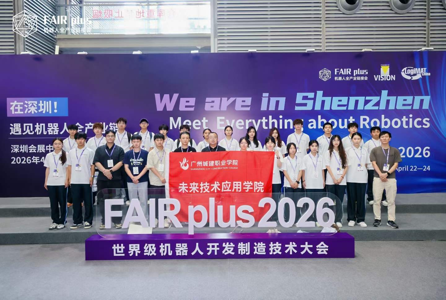 在人工智能与机器人技术蓬勃发展的今天,智能制造正引领着全球工业发展的新方向。为拓宽学生专业视野、深化行业认知,2026年4月22日,广州城建职业学院未来技术应用学院组织师生前往深圳市会展中心(福田),参加机器人全产业链接会。