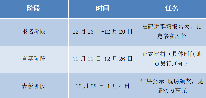 扫描下方二维码加入微信群,填写报名信息即可成功参赛(二维码 12 月 20 日前有效,请尽快行动)。