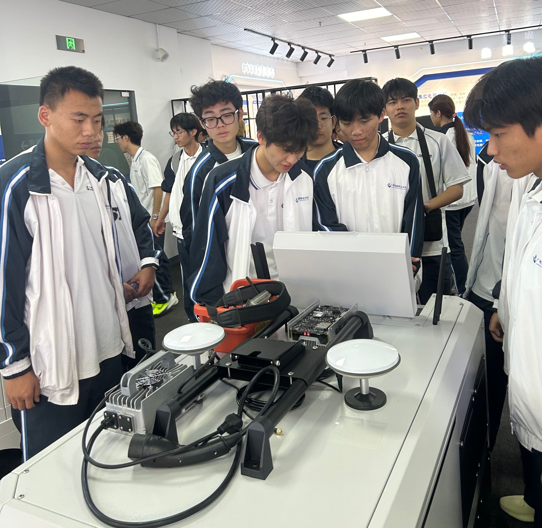 进入公司后,学生们首先进入产品展示区,那里陈列着众多高科技产品,立即吸引了他们的注意力。广州慧谷动力科技有限公司的杨经理对各产品的研发历程、独特性能以及市场影响力进行了详尽的介绍,让学生们对专业知识在实际中的应用有了更为直观的理解。