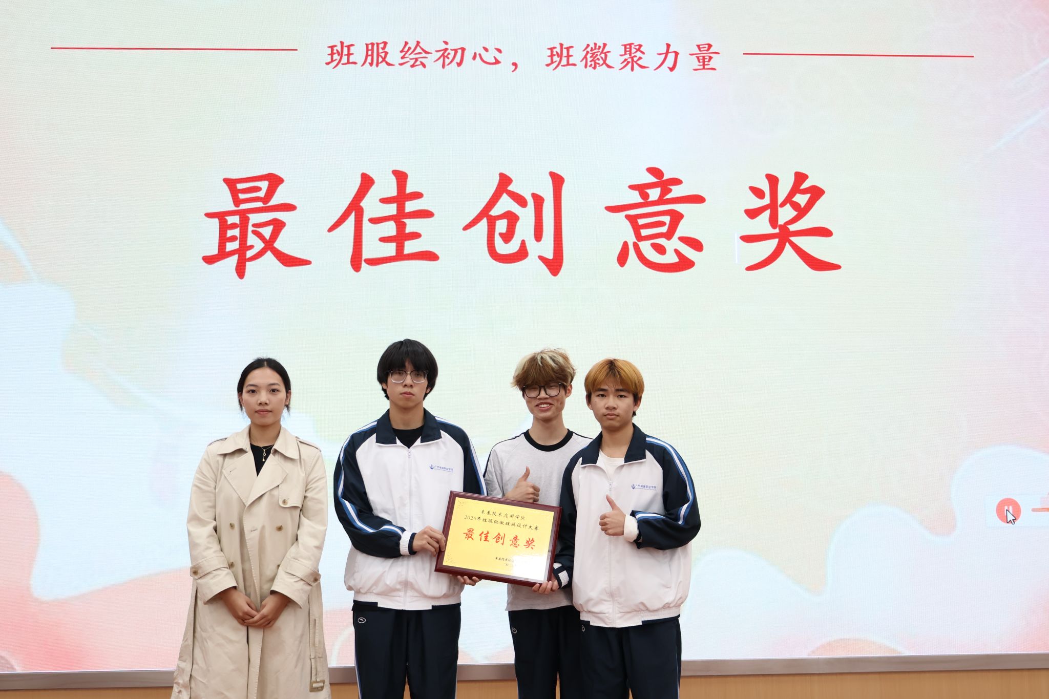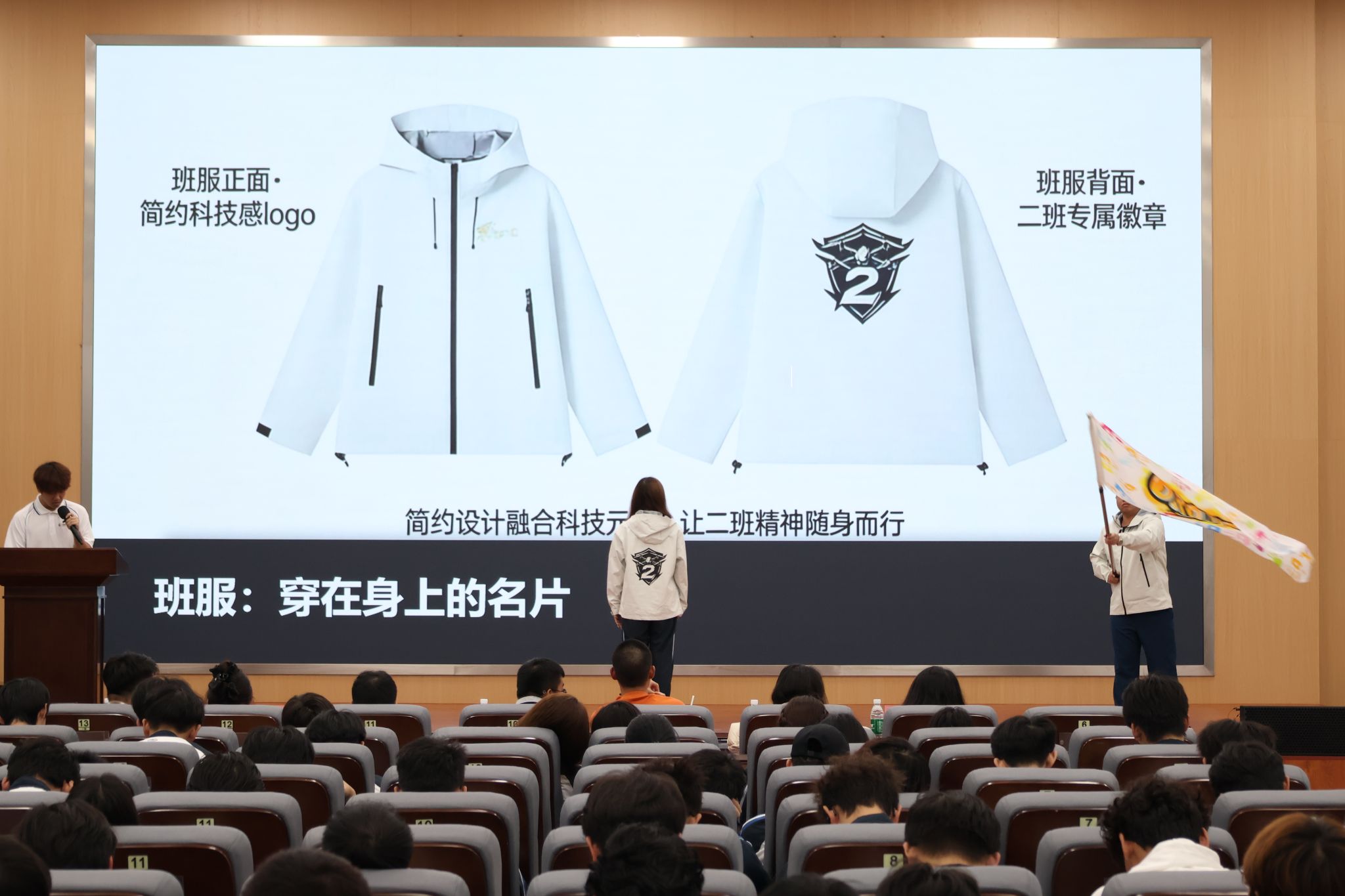 比赛过程中,各参赛班级依次通过“设计理念阐述”与“实物展示”两个环节,生动而全面地呈现了融合专业特色与班级精神的设计作品。每个班级都充分发挥创意,结合所学专业知识,将独特的班级文化与精神内涵融入设计之中,既展示了扎实的专业功底,也体现了团队协作与创新思维。作品不仅具有鲜明的学科特点,更传递出积极向上的集体价值观,充分展现了各班同学的创造力与凝聚力。