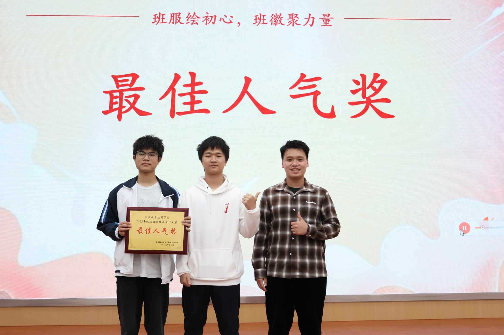 为深入推进班级文化建设,筑牢班级认同感和向心力,塑造积极向上的班风学风。未来技术应用学院党建办公室于12月10日晚在图书馆414报告厅组织开展第二届班服班徽班旗设计大赛。未来技术应用学院直属党支部副书记、副院长王立永、学工办全体辅导员共同出席此次活动并担任评委。活动由郑剑锋、吴欣琦主持。