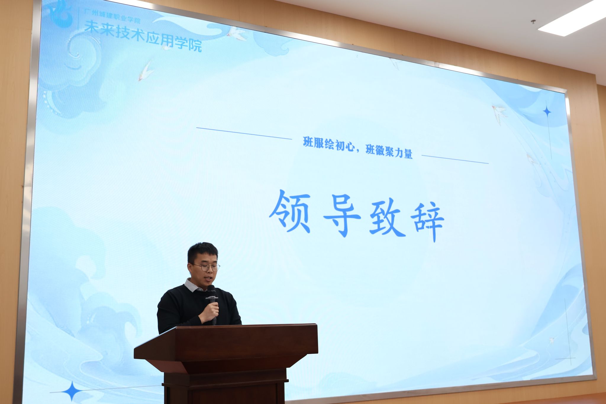 活动伊始,由王立永为大赛致开幕词。他首先对大赛的顺利举办表示祝贺,向精心筹备大赛的师生团队致以诚挚感谢,并对积极参与的各班级和同学表示热烈欢迎。他指出,班服、班徽、班旗是班级精神的重要载体,分别以视觉呈现、精神浓缩、方向指引的不同形式,承载着同窗情谊、集体凝聚力与奋斗力量,期待在此次活动中看到精巧设计背后的创新活力与集体风采。
