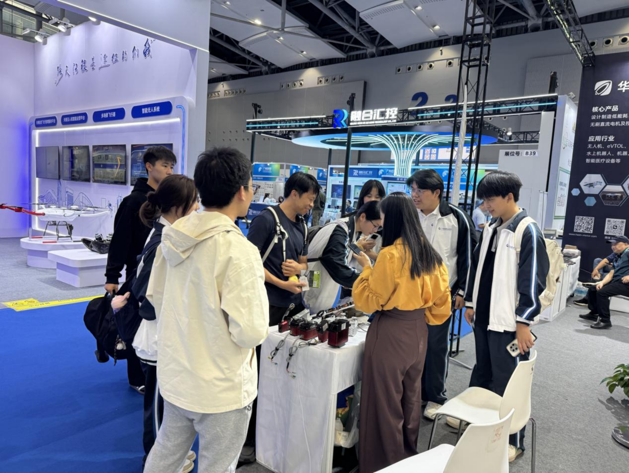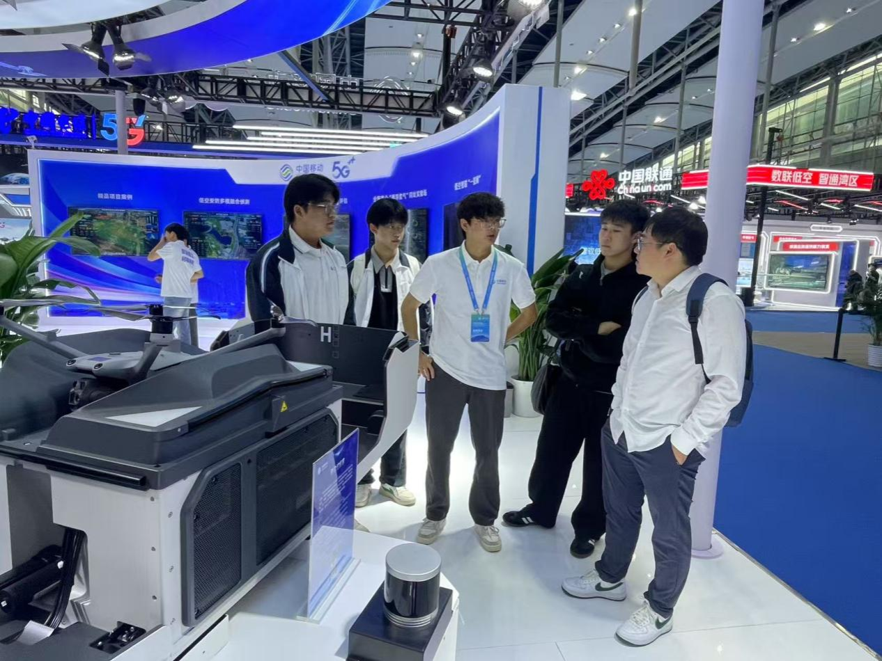 此次参展聚焦低空经济的发展动态、无人机的创新方向及其在多领域的应用。展会呈现了无人机在物流配送、城市交通、环境监测、应急救援等领域的突破性成果。而在智慧城市展区,无人机与5G、人工智能融合的管控系统,更展现出低空经济作为“未来新基建”的潜力。刘俊水老师现场结合实物解读技术路径,为同学们细致讲解无人机动力系统、导航模块及载荷装置的设计原理,将课堂知识转化为立体认知;李浩老师结合政策与市场前景,分析行业趋势;徐金诚老师则带领学生深入企业研发展区,观摩氢动力长航时无人机、集群协同控制系统、智能感知避障平台等前沿成果。老师们以实践为课堂,引导学生了解行业前沿,培养其专业素养与创新能力。
