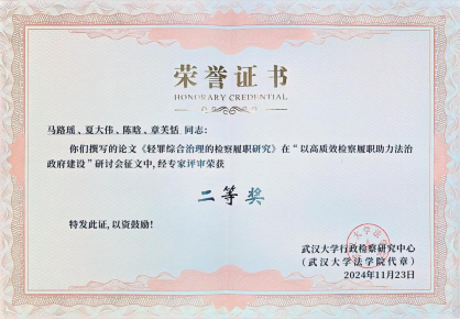 2024年11月23日,由武汉大学tyc7111cc太阳成集团、武汉大学行政检察研究中心、武汉市法学会、武汉市检察院主办,武汉市汉阳区法学会、武汉市汉阳区检察院承办的“以高质效检察履职助力法治政府建设”研讨会暨武汉市汉阳区检察院第十八届检察理论与应用研究年会在武汉市汉阳区检察院顺利举办。