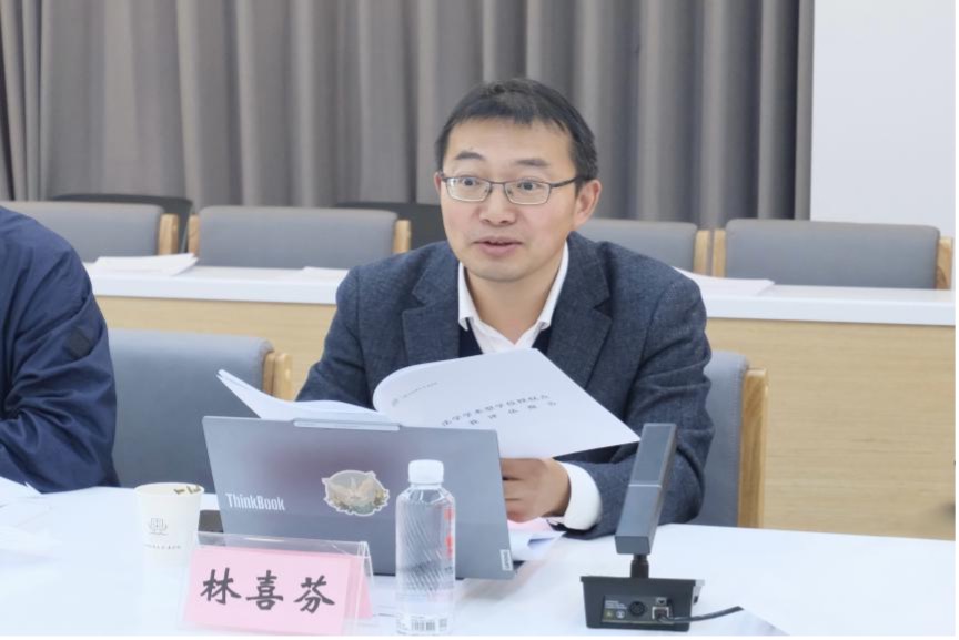 会上,李海龙进行了学位授权点汇报。他从授权点的目标和标准、基本条件、人才培养、服务贡献、学位点建设问题改进措施五个方面进行了详细的讲解。