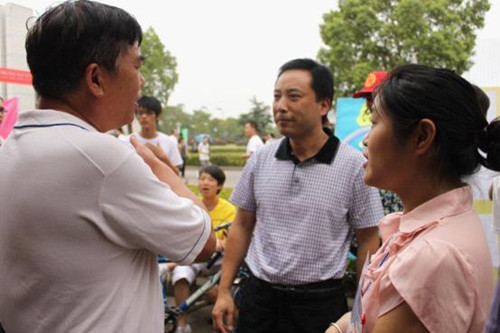 我院党总支书记蔡国金老师与新生家长进行沟通