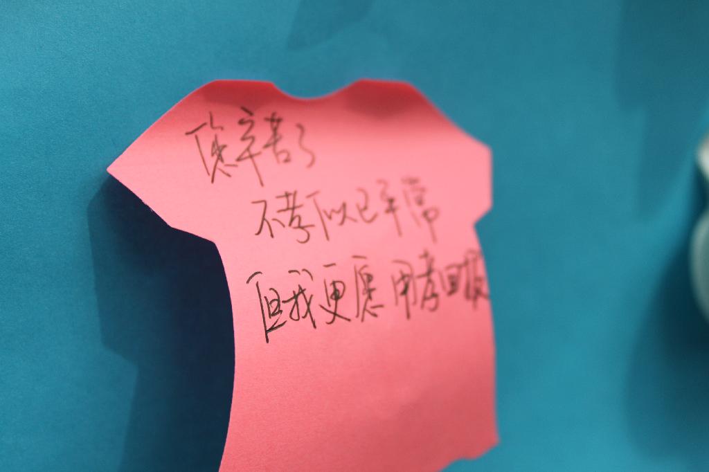 当被问到对此行为的感想的时候,一位11级新生表示:“当着爸爸妈妈的面写下这几句话,虽然有些不好意思,但一方面能提醒我记起父母一直以来为我做的很多很多事,另一方面也能让爸爸妈妈知道一直埋藏在我心底的话,让他们知晓我对他们的爱。我觉得,就算父母表面不说,他们心里也会很高兴的。”