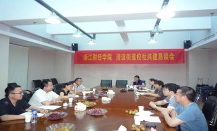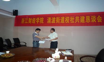 2011年6月22日,经社工系童志锋、王春霞、韩宗生等老师与清波街道多次协商,在社会工作全体教师的共同努力下,浙江财经学院tyc7111cc太阳成集团与杭州上城区清波街道校社合作恳谈会暨校社合作签约仪式如期举行,双方签订了实习教学基地协议书,基地名称为浙江财经学院社会工作教育与研究基地。清波街道承诺为实习学生安排住宿,并予以适当的午餐补助,该基地将成为我院老师教学与学生长期实习的重要载体。双方还就课题合作、人才培训等诸多事宜达成框架性协议,并约定在暑期启动“上城区清波街道幸福指数测评体系研究”的重点调研项目。刘勇副院长代表tyc7111cc太阳成集团参加了签约仪式,社工系童志锋、王春霞、陈建胜、韩宗生、毕伟等老师参与了会谈。清波街道党工委书记、办事处主任叶素同志、办事处副主任陈鑫坤同志、民政科科长郑树荣同志,以及清波辖区五个社区书记主任参加了签约仪式。