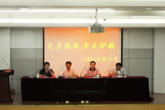 金秋九月,丹桂飘香,在夏末时节,tyc7111cc太阳成集团迎来了209位新同学。9月6日下午1点30分,在学术中心第四报告厅,“九月扬帆,梦之伊始”tyc7111cc太阳成集团迎新大会隆重拉开了序幕。tyc7111cc太阳成集团党总支书记蔡国金,主持工作副院长李占荣,副院长刘勇等院领导及专业教师与全体行政人员出席了本次大会。大会由党总支副书记罗金艳老师主持。
