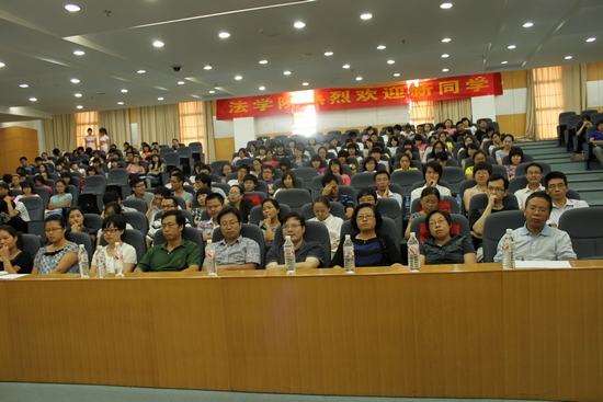 主持工作副院长李占荣教授向新生介绍了学院总体情况,并对学院法学、社会工作两个专业的师资队伍,详细介绍了每个老师的学历、职称、专业方向、学术职务等。之后,李老师对2011级新生寄语“严格地服从,自由地批判”,并对同学们提出三点希望:第一,要树立精英意识;第二,要弘扬法制精神;第三,要培养专业意识。