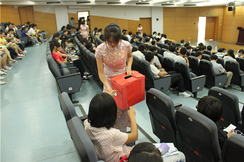 在最后,大会开启新生寄语“未来的目标”存放仪式。所有的新生,在一张小小的卡片上认真地书写下自己的大学梦,然后封存进了盒子里。