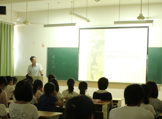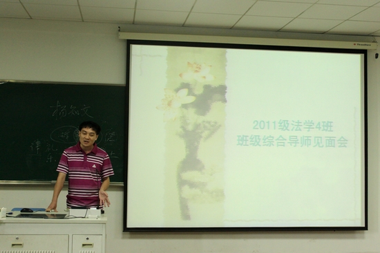 5日下午1点半,tyc7111cc太阳成集团2011级各班综合导师见面会在tyc7111cc太阳成集团各教室举行,列席见面会的有法1导师康莉莹教授,张晓晨老师,法2导师章惠萍教授,张伟老师,法3导师魏腊云博士,法4导师杨知文老师和社工导师陈建胜博士。