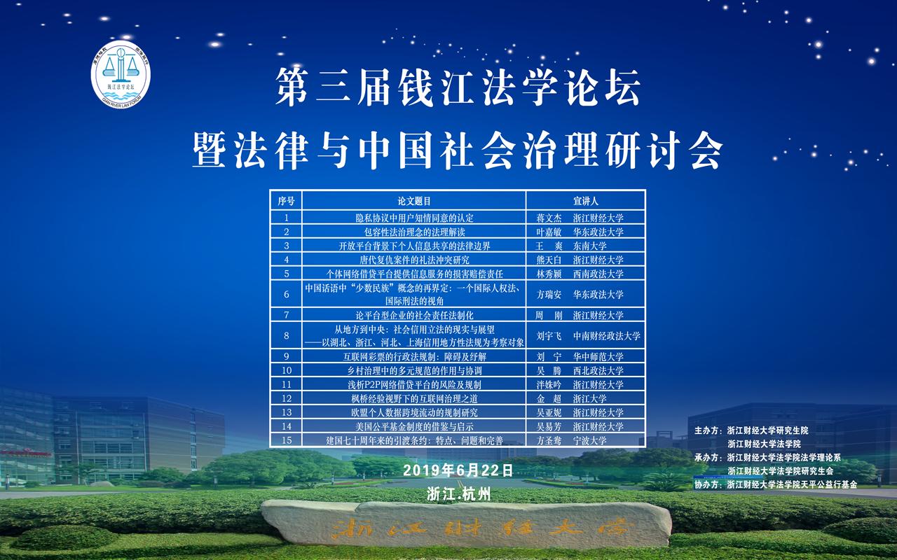 第三届钱江法学论坛暨法律与中国社会治理研讨会