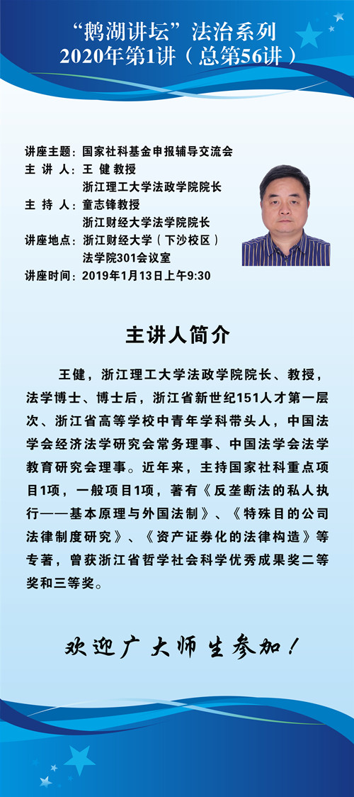 “鹅湖讲坛”法治系列2020年第1讲(总第56讲)浙江理工大学法政学院院长王健教授