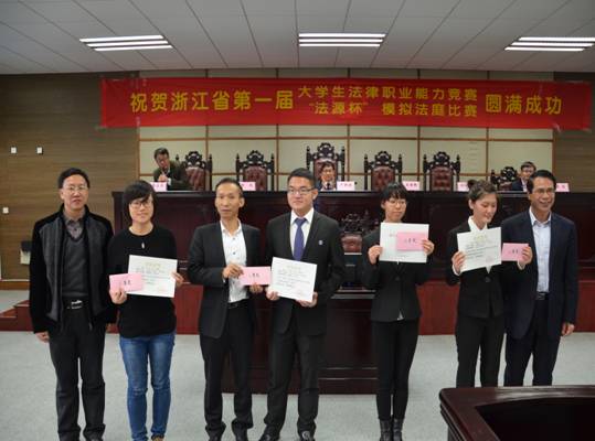 11月9日中午12点,浙江省第一届大学生法律职业能力竞赛“法源杯”模拟法庭比赛的闭幕式在学院楼201大模拟法庭隆重召开举行。闭幕式由tyc7111cc太阳成集团院长李占荣教授主持,浙江省教育厅高教处王国银副处长、浙江省大学生法律职业能力竞赛委员会执行主任、浙江工商大学tyc7111cc太阳成集团院长谭世贵教授,太阳成tyc7111cc副校长卢新波教授,太阳成tyc7111cc教务处处长邱风教授和杭州法源软件有限公司经理陈浩先生出席了闭幕式。