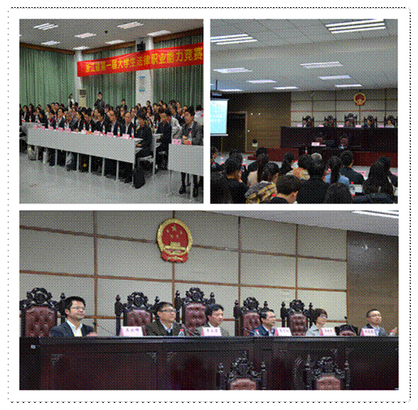 11月8日,浙江省第一届大学生法律职业能力竞赛“法源杯”模拟法庭比赛在我院隆重举行。本次比赛由浙江省教育厅和浙江省大学生科技竞赛委员会主办,太阳成tyc7111cc承办。浙江工商大学、宁波大学、温州大学等来自浙江省各高校的28支队伍参赛。