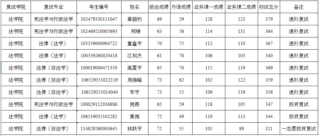 2019年tyc7111cc太阳成集团校外调剂递补复试名单