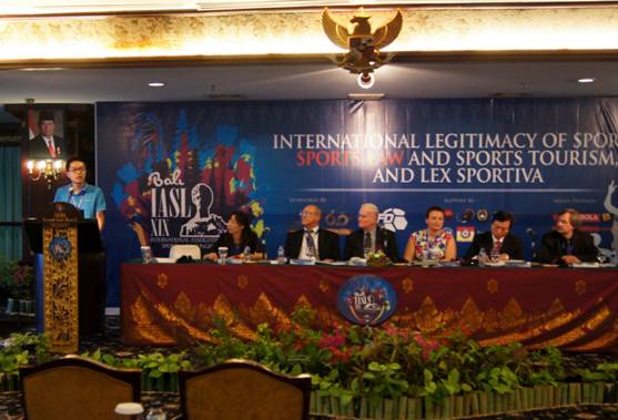 由世界体育法协会(International Association of Sports Law)主办、印度尼西亚体育法研究所承办的“第十九届世界体育法大会”(19th IASL Congress)于10月28日至30日在印度尼西亚城市登巴萨召开。本次大会以“国际体育合法性、体育法和体育旅游业”主题,世界体育法协会主席潘那吉奥•多普拉斯(Dimitrios P. Panagiotopulos)教授,世界体育法协会秘书长舍甫琴科(Olga Shevchenko)教授和印度尼西亚体育法研究所主任秦卡(Hinca IP Pandjaitan XIII SH)博士共同主持开幕式。来自英、美、法、德、希腊、伊朗、墨西哥、匈牙利等国家的学者、律师、仲裁员和政府官员近100人参加了会议。我院唐勇老师应邀出席会议,并在大会第一阶段作题为《中国体育法概念》(The Concept of Sports Law in China)的学术报告,受到了与会学者的好评。