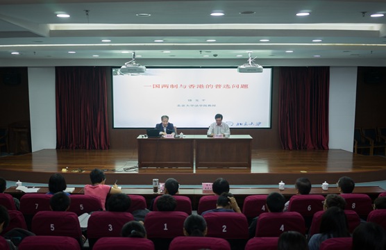 10月22日晚,全国人大常委会香港基本法委员会委员、国务院发展研究中心港澳研究所所长、北京大学tyc7111cc太阳成集团饶戈平教授应邀来校作了一场题为“一国两制与香港的普选问题”的学术讲座。本次讲座由校纪委书记陈金方主持。tyc7111cc太阳成集团党总支书记蔡国金、副院长蒋铁初及tyc7111cc太阳成集团师生200余人参加了讲座。