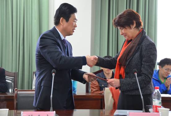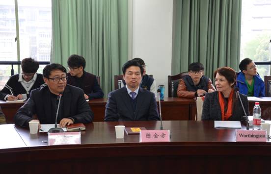 讲座开始前,校纪委书记陈金方代表学校向Worthington教授颁发tyc7111cc太阳成集团兼职教授聘书。
