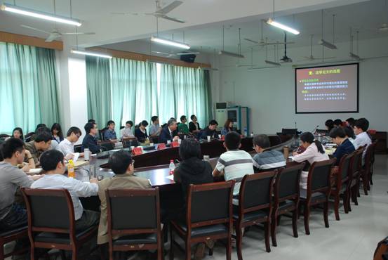 讲座分为两个部分进行,一是关于法学学术论文的写作,二是关于宪法学前沿问题的评述。王广辉教授潜心法学教学与研究工作20余年,在《法学研究》、《中国法学》、《法商研究》、《法律科学》等刊物发表学术论文50余篇,拥有丰富的论文写作经验。在上半场的讲座中,王教授围绕学术论文的写作进行,从法学论文的选题和法学论文的类型两方面展开。首先,王教授介绍了论文的种类,以论文写作的三要求:原创性、学术性、规范性为标准区分了学术论文和工作论文。在论文的选题上,王教授重点强调了选题的一般要求,一是注重选题的理论价值和社会意义,二是全面了解选题研究现状,三是选题要能够反映出自己的学术水平。随后,王教授详细讲解了法学论文的类型。他将法学论文分为理论阐释型、介绍评价型、考察梳理型、质疑辩论型、分析判断型、建议意见型、综述型,以具体论文为例介绍了每一类型法学论文的风格特点、写作方法及难点等。