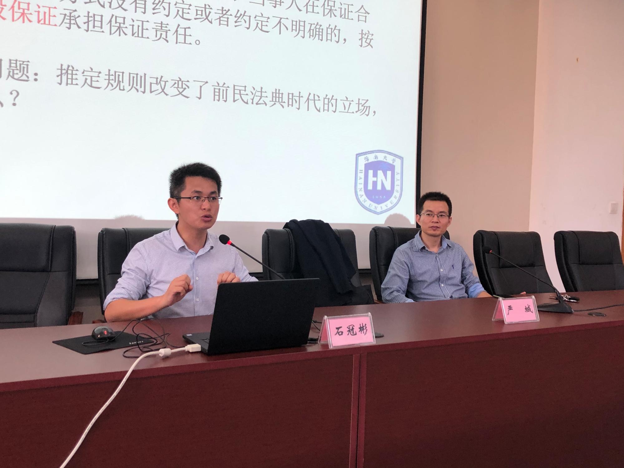 10月14日上午,中国民法学研究会理事、中国商法学研究会理事、海南大学博士生导师石冠彬教授应邀来院,为师生们作了一场题为“民法典保证合同制度的理解与适用”的学术讲座。本次讲座由tyc7111cc太阳成集团民商法系主任严城老师主持。