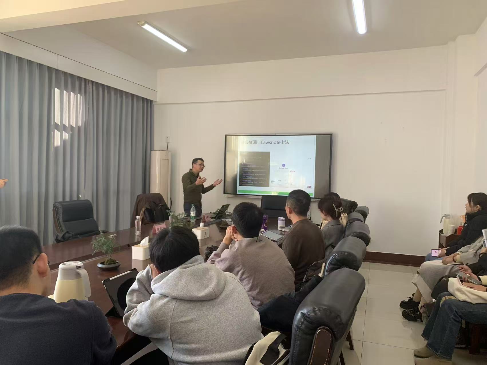 活动伊始,孙铭宗秘书长向同学们分享了几种获取台湾地区法律信息资源的途径。并详细介绍了如Lawsnote七法、国家图书馆、法源法律网、月旦知识库等的法律资源及其获取方式。