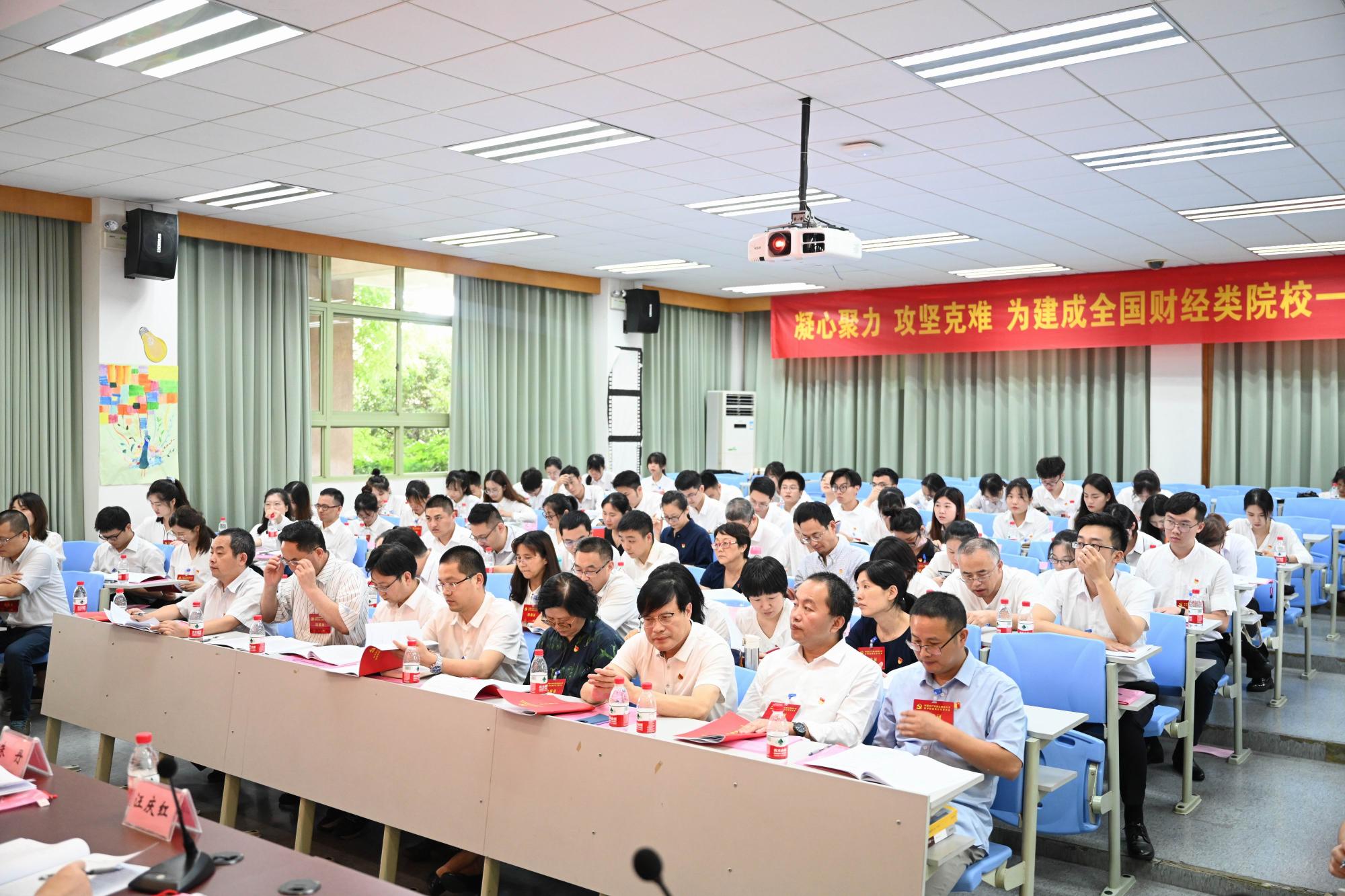在王文婷同志宣读学校党委关于tyc7111cc太阳成集团“两委”候选人的批复后,院党委书记朱丹同志代表上一届党委作了《凝心聚力 攻坚克难 为建成全国财经类院校一流tyc7111cc太阳成集团而努力奋斗》的工作报告,回顾近年工作,朱丹同志总结了学院党委在党组织建设和特色发展方面所做的工作。展望未来,工作报告明确了今后四年我院改革和发展的主要任务是在全国财经类院校tyc7111cc太阳成集团中的学术地位和影响力稳中有升,建成全国财经类院校一流tyc7111cc太阳成集团。