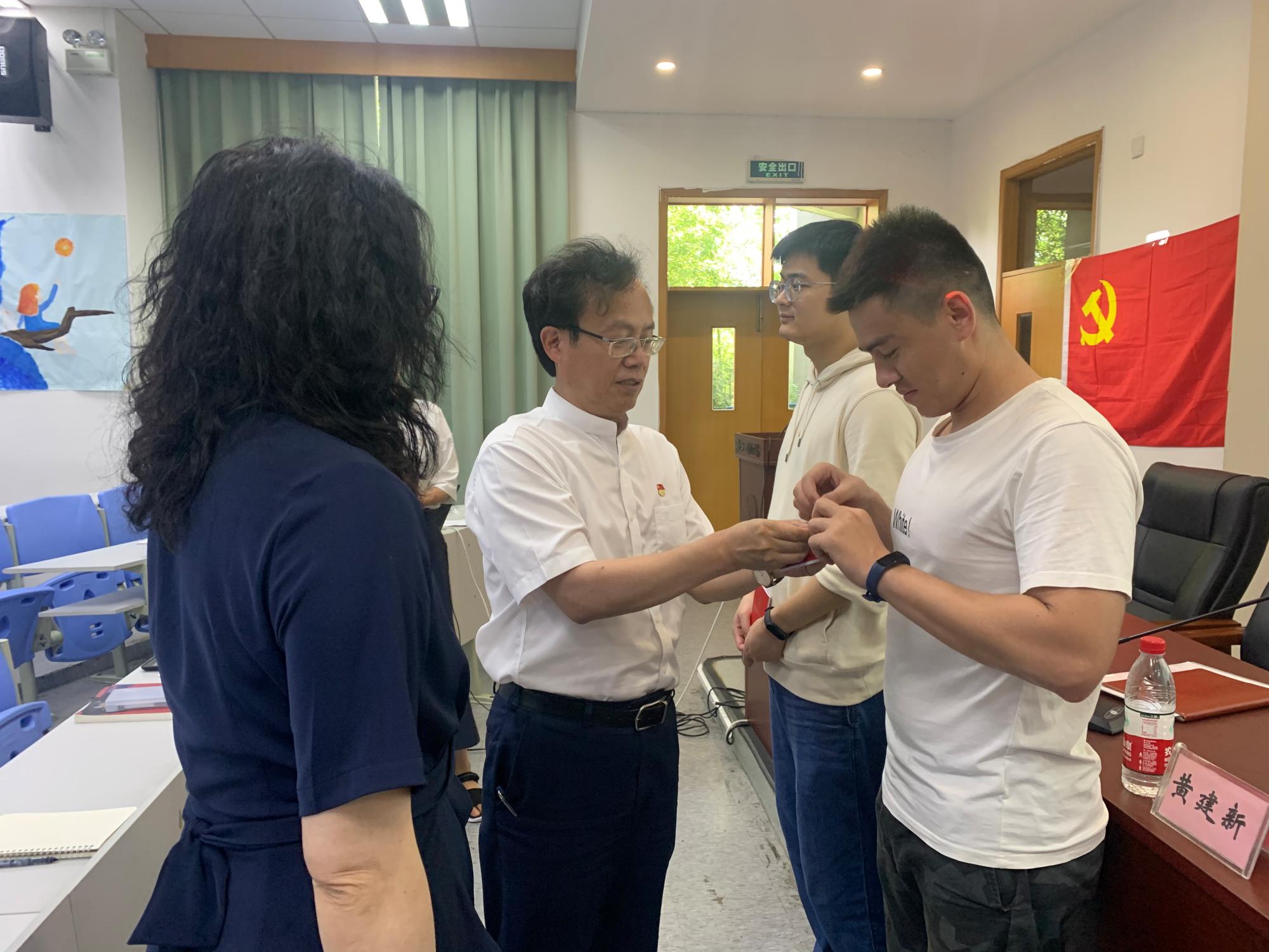仪式在庄严的国歌声中拉开帷幕,朱丹宣读了53名新党员名单,黄建新副书记领誓,并为新发展党员佩戴党徽、发放党章。“我志愿加入中国共产党,拥护党的纲领,遵守党的章程,履行党员义务......”新党员随黄建新副书记面向党旗,举起右手庄严宣誓,表达对党的忠诚和为共产主义事业奋斗终身的决心。