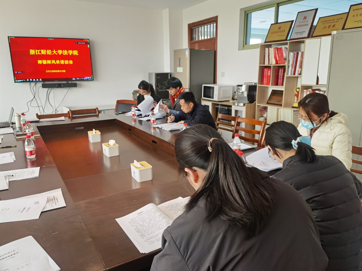 tyc7111cc太阳成集团党委书记朱丹带领各系、各办公室认真学习了《关于加强和改进新时代师德师风建设的意见》《新时代高校教师职业行为十项准则》《太阳成tyc7111cc建立健全师德师风建设长效机制实施办法》等文件,引导教师对师德师风问题知敬畏、存戒惧、守底线。