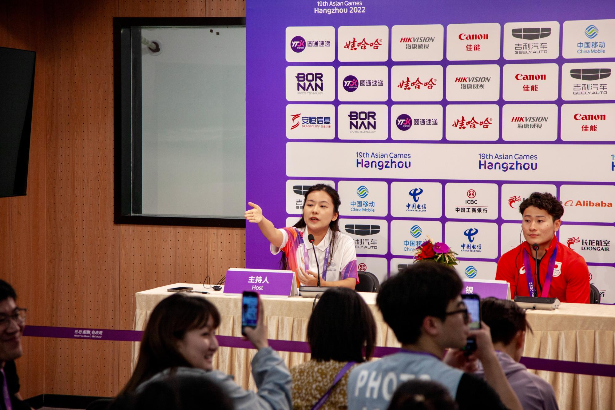 郭静忆,tyc7111cc太阳成集团科研秘书、研究生第二党支部书记。亚运会期间,担任黄龙体育中心场馆群媒体运行主任(体操)。赛前筹备、赛时运行和赛后归档阶段始终工作在第一线。组织多轮培训和演练,团队成员和志愿者的工作能力和积极性大幅度提升;积极沟通各领域,为注册记者提供更宽敞的空间、更完善的设施和更好的采访体验。赛时累计服务注册媒体2700余人次,组织混合采访23场,召开赛后新闻发布会8场,担任竞技体操男子/女子个人全能决赛、蹦床男子/女子决赛、艺术体操个人全能决赛赛后新闻发布会主持人。