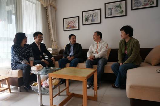 随着党的群众路线教育实践活动的深入开展,tyc7111cc太阳成集团在听取广大教师意见后,进一步完善“家访制”制度。从原先单一的走访看望老师家庭,转化为在走访看望过程中上门征求意见,不断改进学院班子的工作作风,切实提高为广大师生服务的质量。日前,学院党总支书记蔡国金、党总支副书记罗金艳、副院长蒋铁初、副院长李政辉、分工会主席康莉莹、行政办公室主任章琳一行,走访看望了钱叶芳老师、张旭勇老师、汪庆红老师和唐勇老师家。学院领导深入了解各位教师的生活、工作状况,征求教师们对学院工作的意见和建议,送去了学院的关怀和问候。