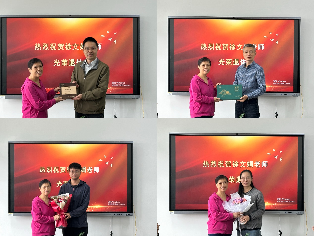 在荣休仪式上,全体与会人员共同回顾了徐文娟老师十几年如一日坚守岗位,为学院事业发展兢兢业业、脚踏实地的工作点滴。学院院长唐勇和院党委书记丁洪分别为她送上荣休纪念牌和学院精心准备的荣休礼物,代表学院对她的辛勤付出表示崇高的敬意,并预祝她荣休后的生活充实幸福。