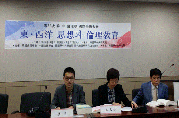近日,我院唐勇博士赴韩国参加由韩国伦理学会主办、韩国学中央研究院承办的第22届韩中伦理学国际学术研讨会,该会议的主题为“东西洋思想与伦理教育”,中韩两国的80余名学者参加了会议。
