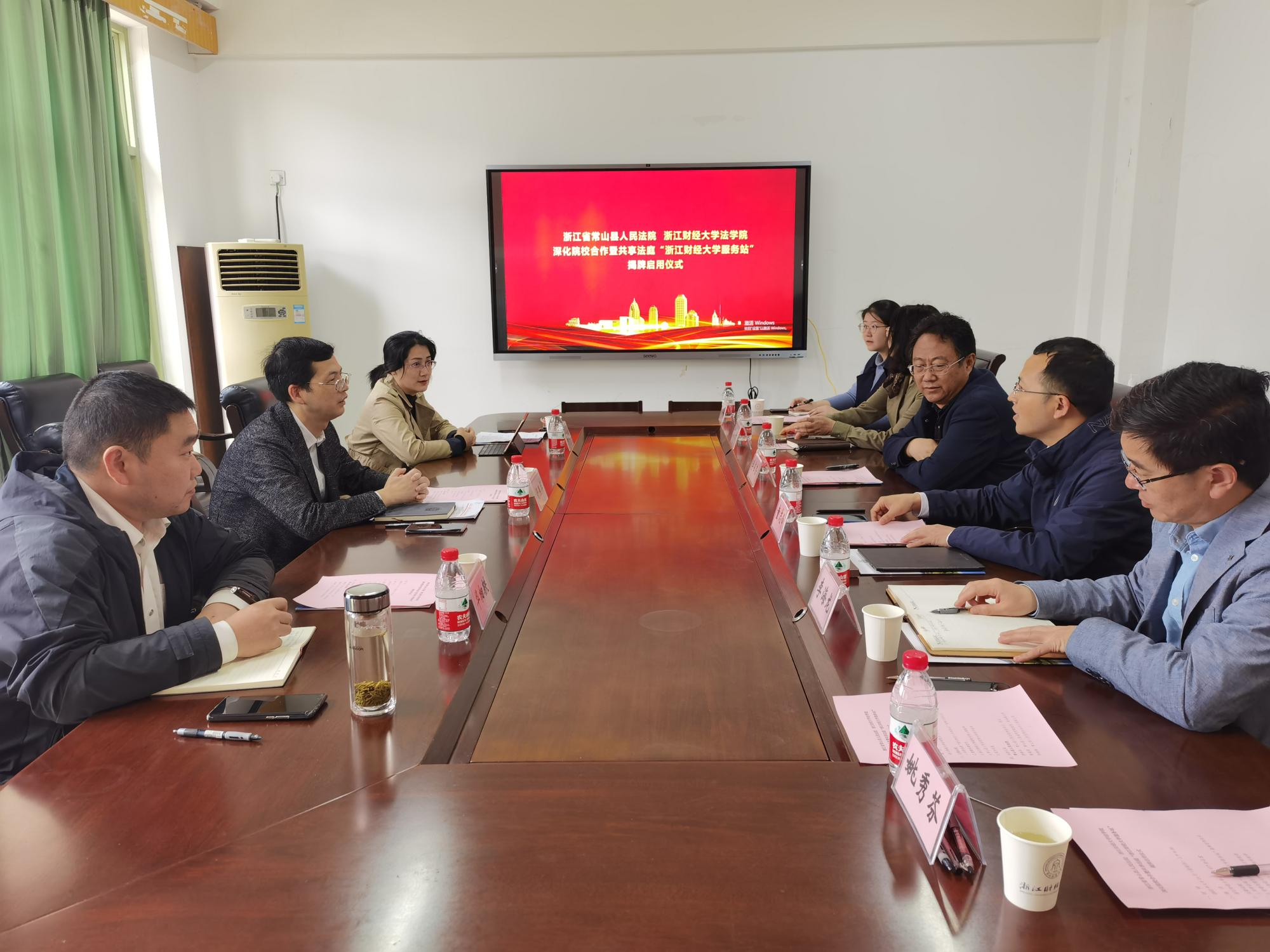 首先,李占荣和舒燕华共同为共享法庭“太阳成tyc7111cc服务站”揭牌。李占荣介绍了学校的基本情况,并指出此次共建常山县法院共享法庭“太阳成tyc7111cc服务站”是双方合作的再深化。希望今后双方进一步聚焦法律创新人才培养、基层法治治理、法律教学范式探索、法治文化研究等领域,共同推进法学理论研究与法治实践互动。