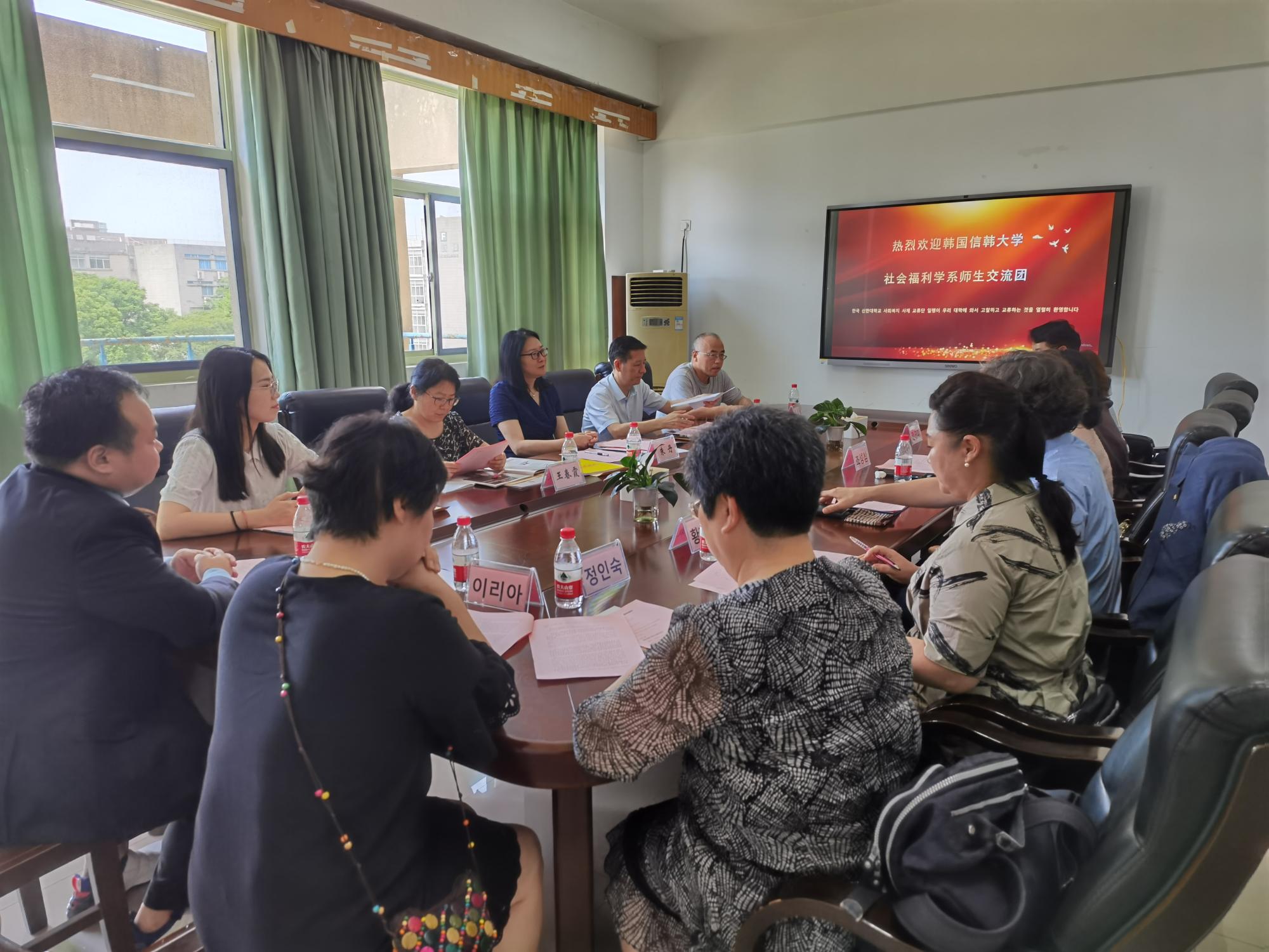 近日,由韩国信韩大学校委委员、社会科学大学院长林元善(Weon Sun Lim)博士率领的社会福利学系师生交流团一行11人来访我院,学院党委书记朱丹、社会工作系部分教师接待了客人。
