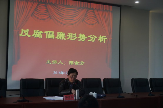 12月29日下午,校纪委书记陈金方在tyc7111cc太阳成集团101报告厅作了题为《反腐倡廉形势分析》的形势与政策专题报告。tyc7111cc太阳成集团全体学生党员及部分2015级学生参加了报告会。报告会由tyc7111cc太阳成集团党总支副书记罗金艳主持。