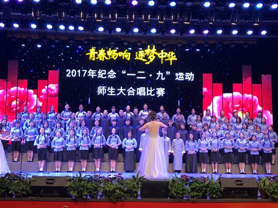 为纪念“一二•九”抗日爱国运动,进一步传承和弘扬爱国主义精神,12月12日下午1:30,我校“青春唱响,逐梦中华”师生大合唱比赛在文化中心剧场隆重举行,我院师生节目《国家》、《游击队之歌》荣获本次大赛二等奖和最佳舞台效果奖。
