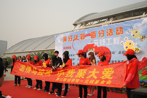 为了更好地弘扬“团结 友爱 互助 进步”的精神,教育广大学生珍惜良好的生活、学习条件,给广大师生提供一个奉献爱和传播爱的机会,由tyc7111cc太阳成集团与人文学院(马克思主义学院)共同推出的“满分计划 百分行动”一元钱工程启动仪式于11月14日在校体育馆前隆重开幕。