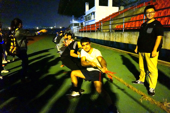 开幕式的第一个环节是由tyc7111cc太阳成集团团委学生会主席周鹏致辞,他在讲话中寄托了对学生积极参加体育锻炼活动的希望和鼓励,并在最后宣布了活动的开始。随后,活动进入第二环节:全体同学开始绕操场跑步两圈,他们在操场上展现了他们的青春活力,并提前熟悉了夜跑的规则。看着他们奔跑的身影,不由让人感到青春的美丽与朝气。第三环节是各种游戏,其中包括:拔河,一块和五毛,呼啦圈传递,两人三足,撕名牌。首先进行的是拔河,参与的每个人都拼尽全力,青筋从他们的额头冒起,每个人都为了集体的荣誉而努力,不肯服输,最后由非诉实验班和法二班赢得了优胜。每个同学最期待的当然是各种各样的游戏,在“撕名牌大赛”中非诉和社工撕得热火朝天,非诉班在开始的时候专攻社工的大将最后一步一步将社工打败,但是社工也同样很厉害,灵活躲避的同时也撕掉了非诉的很多名牌,体育竞争让人开心的或许就是运动时开心的心情吧!接下来就不得不提到“两人三足”这个游戏,这个游戏不仅让同学锻炼了身体,还让他们了解到团结合作的重要性,齐心协力的人绑住之后也可以健步如飞,而没有好的合作连一步也迈不出,我们在日常的生活和学习中也要培养合作的意识,因为没有一个人能离开群体。
