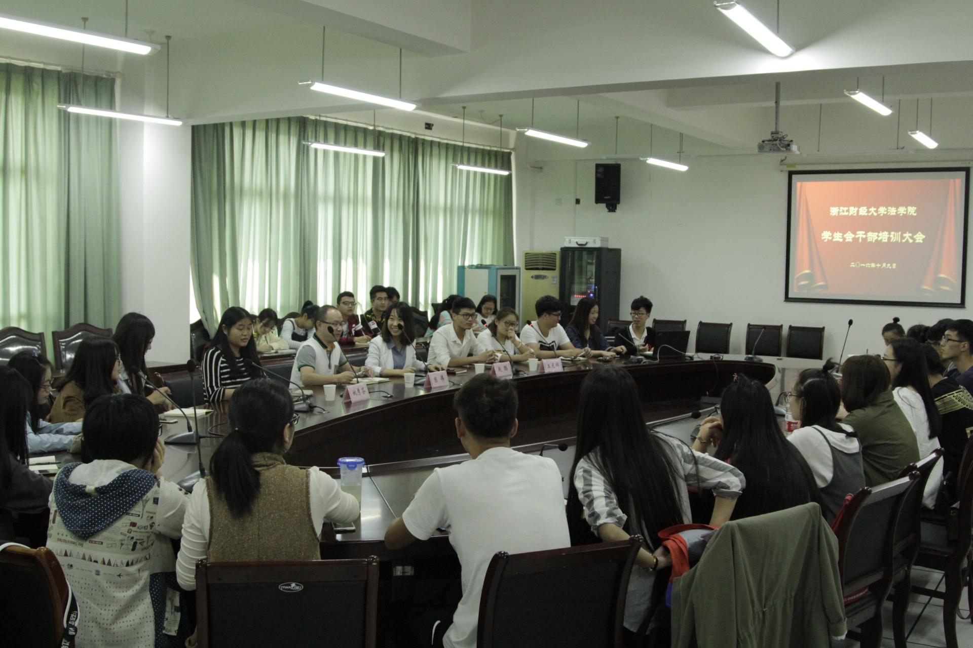 为提高我院团委学生会干部的工作能力,加强学生会干部的服务作风,10月9日下午两点半tyc7111cc太阳成集团在院楼301室召开全体学生干部培训大会,参与本次培训大会的有tyc7111cc太阳成集团党委副书记陈伟老师、太阳成集团办公室主任姚秀芬老师、院团委书记赵聪老师、辅导员王龙辉老师及全体学生会干部。