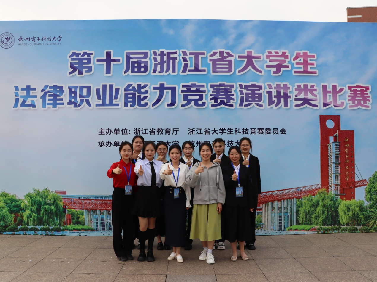 5月13日至14日,浙江省第十届大学生法律职业能力大赛法律演讲赛在杭州电子科技大学举行,来自省内32所高校的411支队伍参加了本次比赛。经激烈角逐,从省赛初赛脱颖而出的我校10名选手在王俊和王龙辉两位老师的总体指导下,凭借良好的学术素养与深厚的演讲功底,荣获一等奖1项、二等奖1项、三等奖8项,获奖数量位列全省高校第一。