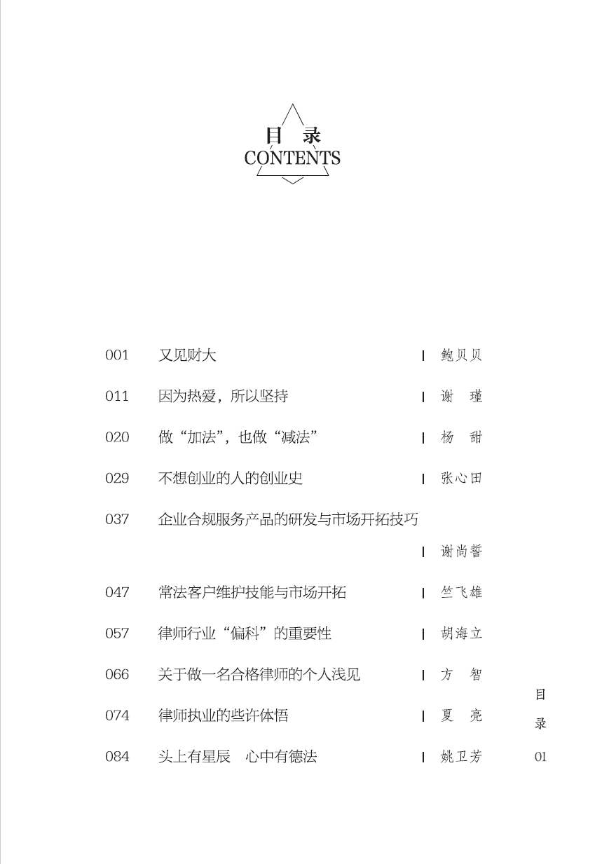 教育部长江学者特聘教授、中国法学会法理学研究会副会长、中国法学会律师法学研究会副会长、华中科技大学tyc7111cc太阳成集团院长汪习根教授为本书题写推荐词:“律师是法学专业的主要就业岗位之一。想成为一名合格的律师,不仅需要专业知识的积累,还需要资深律师的指点。本书将律师职业心得和门道娓娓道来,对tyc7111cc太阳成集团学生的职业规划具有启发性和指导性,值得有志于从事律师职业的大学生细细品味。”