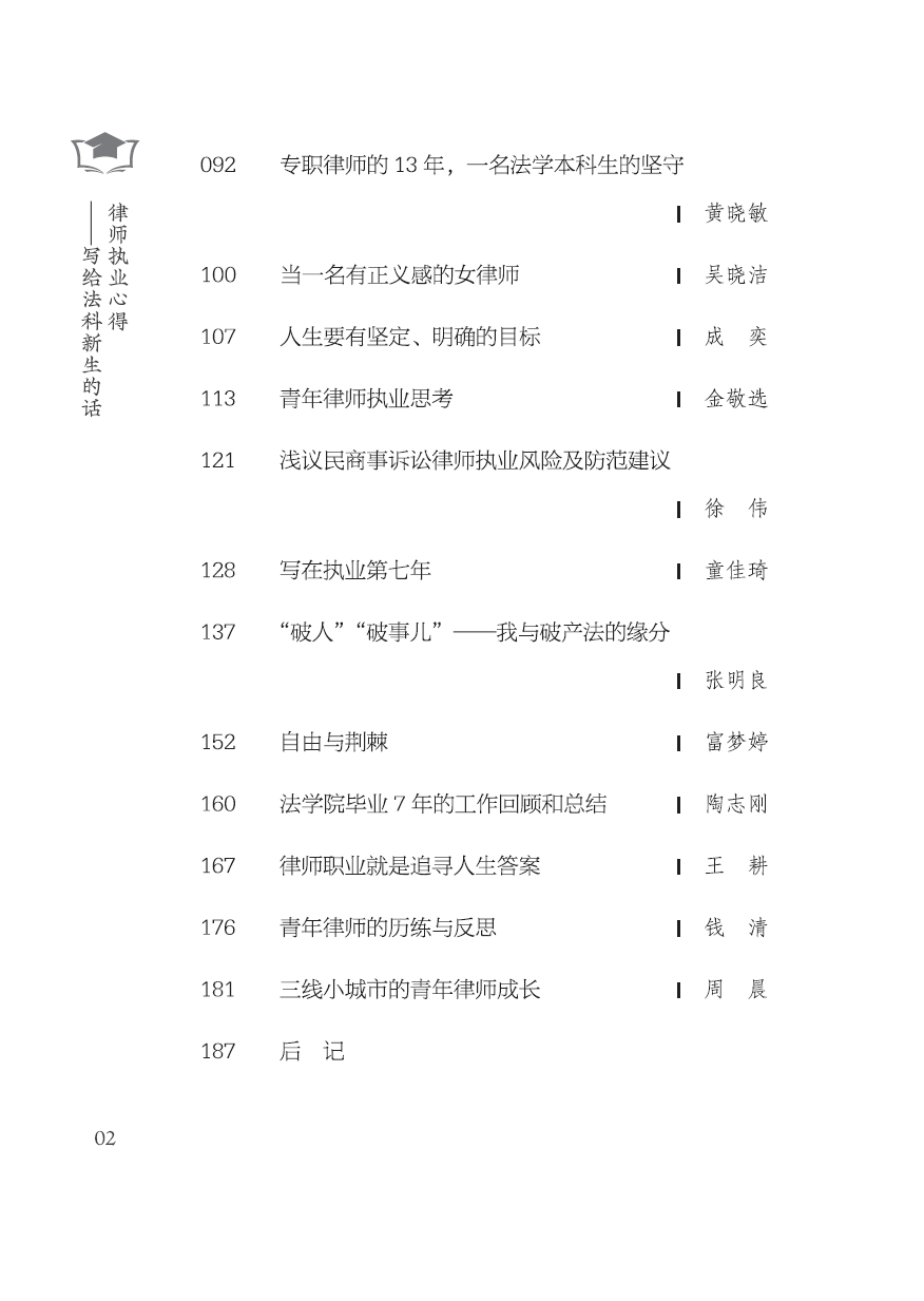 本书既是本科生短学期课程《法律职业生涯规划与发展》的教学辅导参考书,又作为开学礼物送给2025级法学新生。学院期待有更多的校友关心支持教学工作,为培养以实践为导向的法治人才献计献策。
