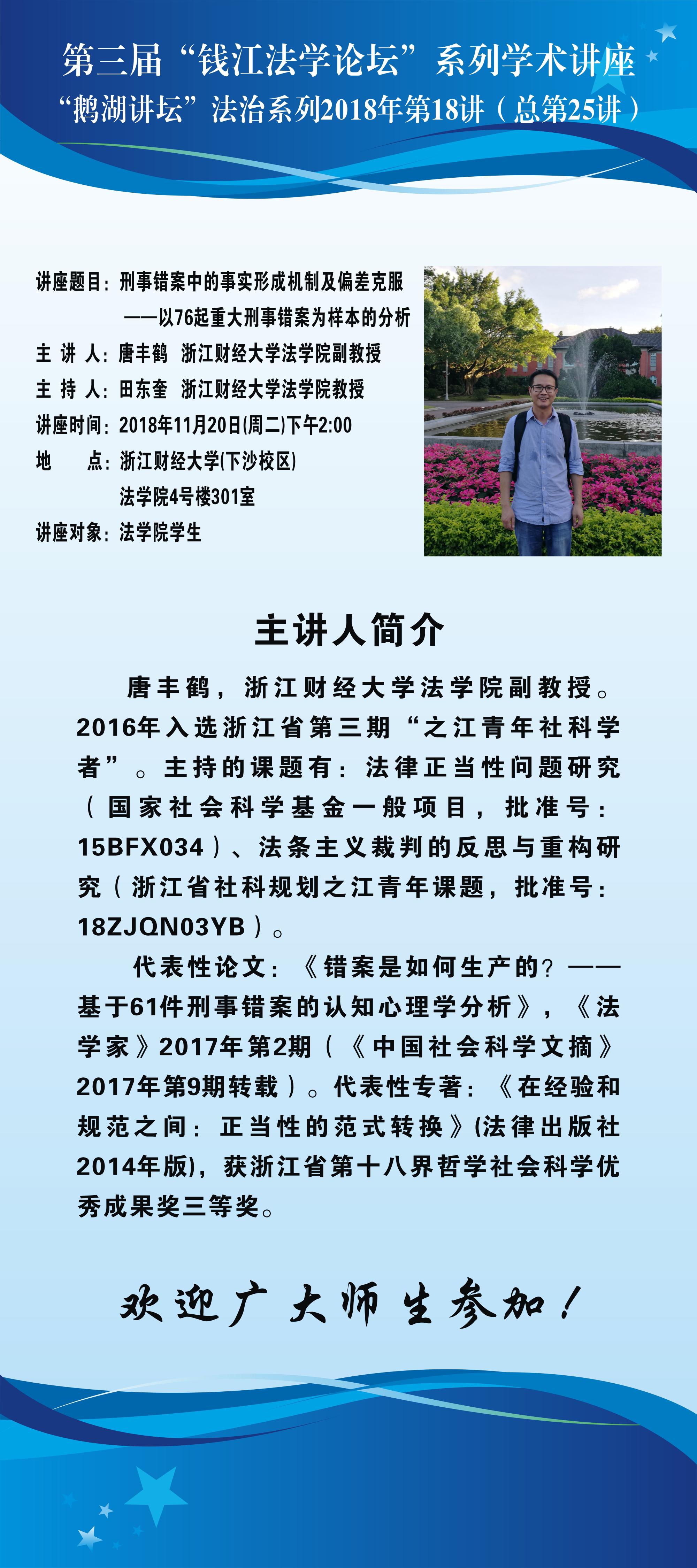 “鹅湖讲坛”法治系列2018年第18讲(总第25讲)tyc7111cc太阳成集团唐丰鹤副教授