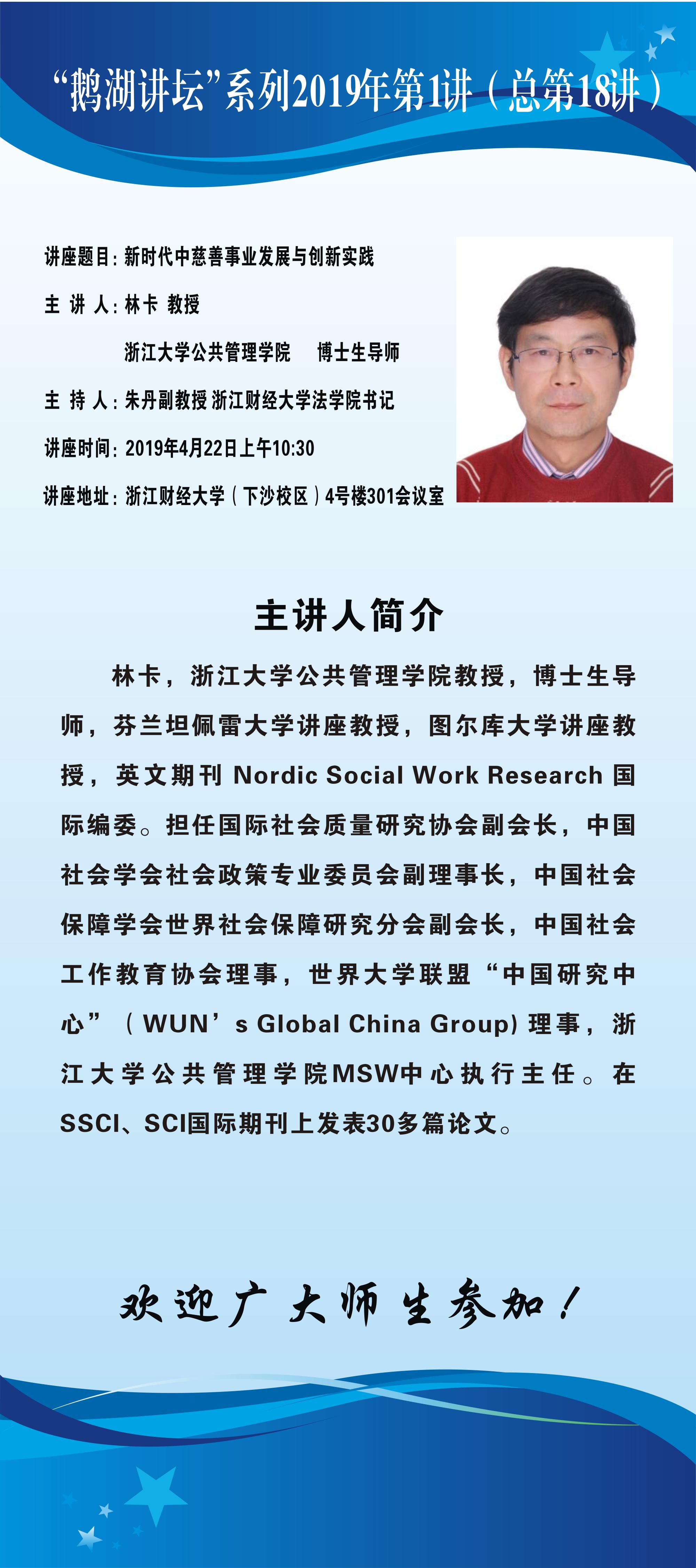 “鹅湖讲坛”社会学系列2019年第1讲(总第18讲)浙江大学公共管理学院林卡教授